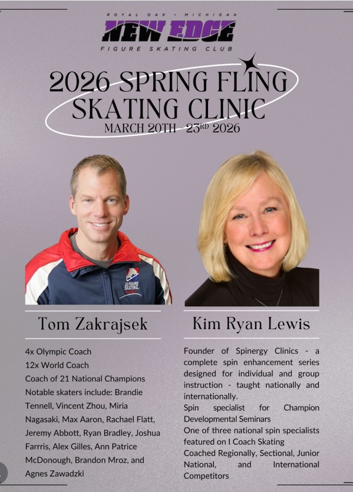 John Lindell Ice Arena 1403 Lexington Blvd, Royal Oak2026 Spring Skating Clinic with Kim-Ryan Lewis and Tom Zakrajsek March 20th-23rd